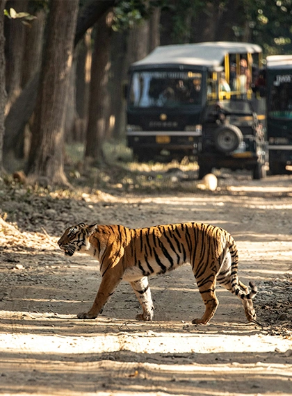 Conducted daily in the buffer zone, near Khatia and Mukki Gates, these are guided walks in the late evening. Walking through the forest is a sensory experience that cannot be experienced in a moving vehicle. Suitable for guests who are staying two or more nights.